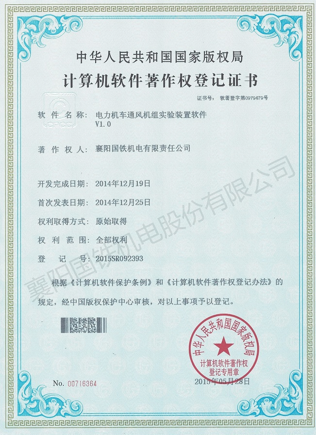 電力機車通風(fēng)機組實驗裝置軟件(軟件著作權(quán)證書)